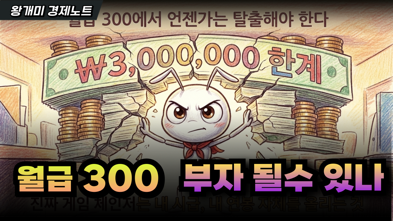 여기, 월급 300만 원 받는 직장인 개미가 있습니다. 아침에 출근해서 욕 한 번 참고, 퇴근길 지하철에 몸 싣고, 한 달에 통장에 찍히는 돈은 300만 원 남짓. 이 개미가 현실적으로 부자가 될 수 있을까요?